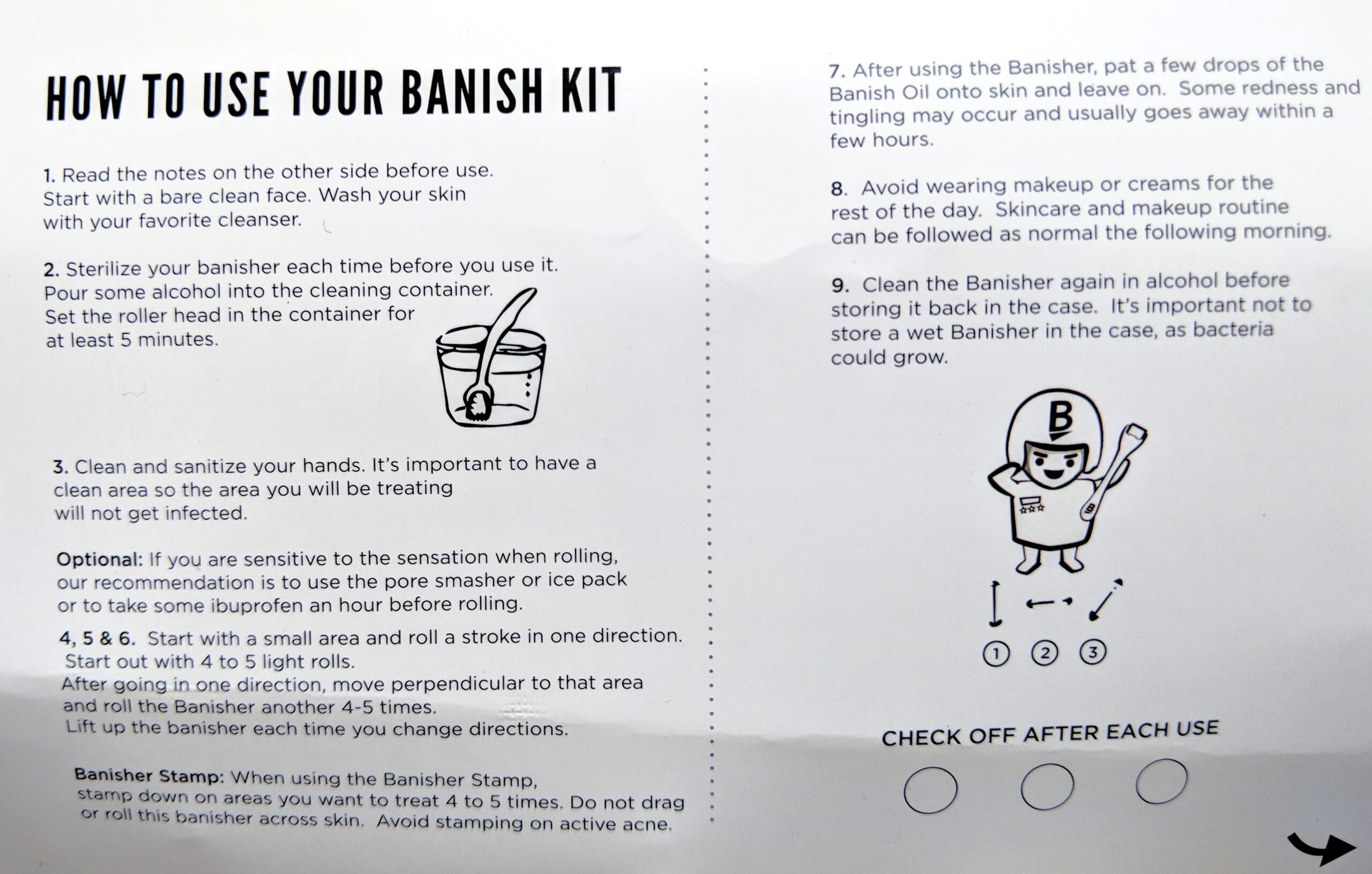 Use: Day of dermarolling, before using the Banisher Roller