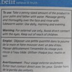Application: Nickel-size amount, light lather on face and massage for 1 minute. Slightly foams. Pat excess water off with a face towel, but still leaving skin feeling slightly damp.