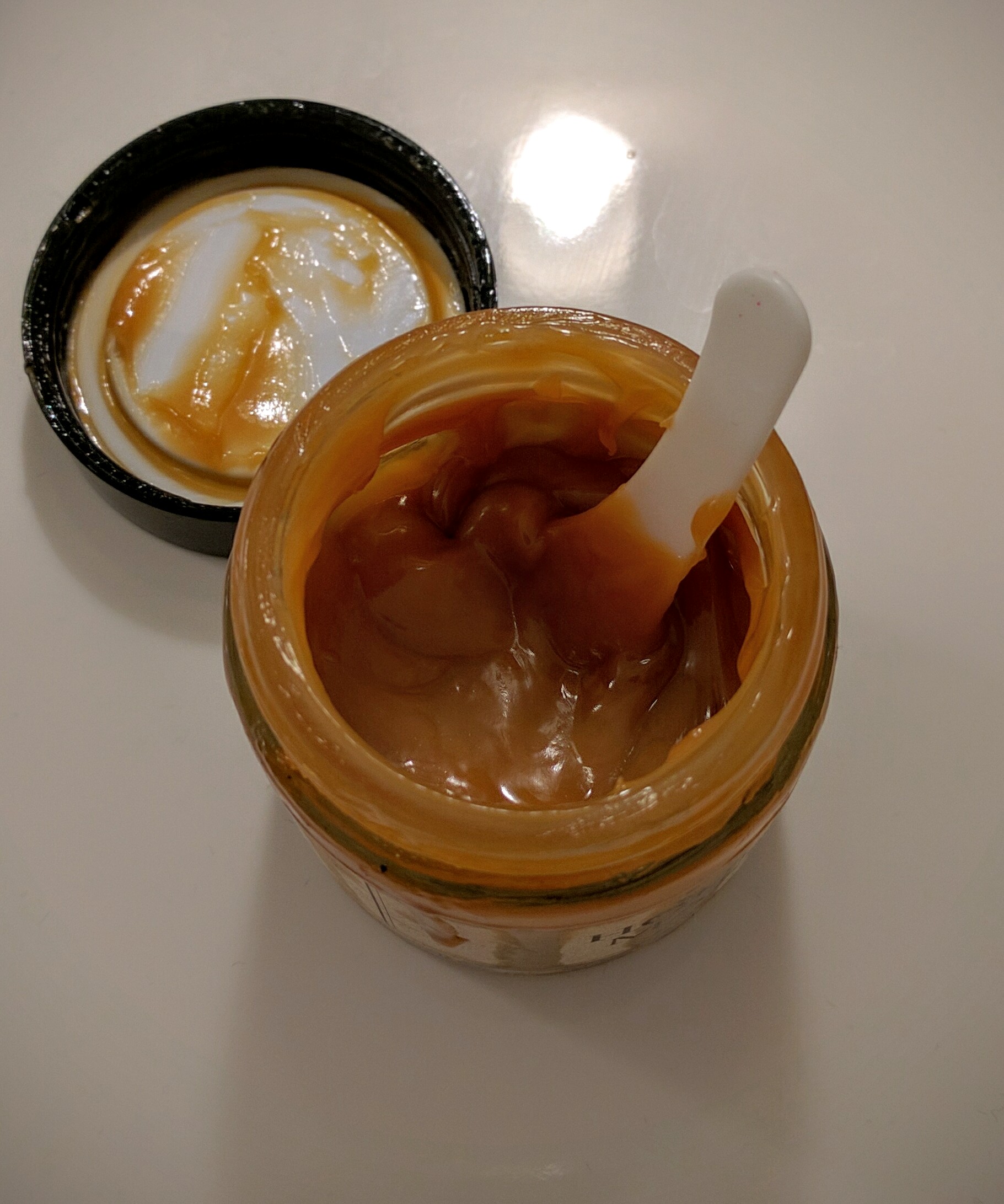 With the plastic spatula provided in the box, if the honey separated with the oils, I mix it around until the consistency looks well enough to put on my face. I don’t put too much, and I use my fingers to spread out the product evenly on my face, focusing the excess on my troubled areas. The mask is not opaque by any means, however, my face does look a tad darker when I have it on. I personally like to leave this product on for an hour, to get the full benefits of the mask. As I wash the mask off, it seems like it emulsifies a tad. At first I was confused, I thought I wasn’t washing all the mask off, for it seemed to soft and smooth to be my skin. Then I realized it WAS my skin! What I notice after I washed everything off: